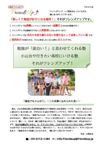 小山台を目指す塾なら「最低でも小山台」のフレンズアップ
