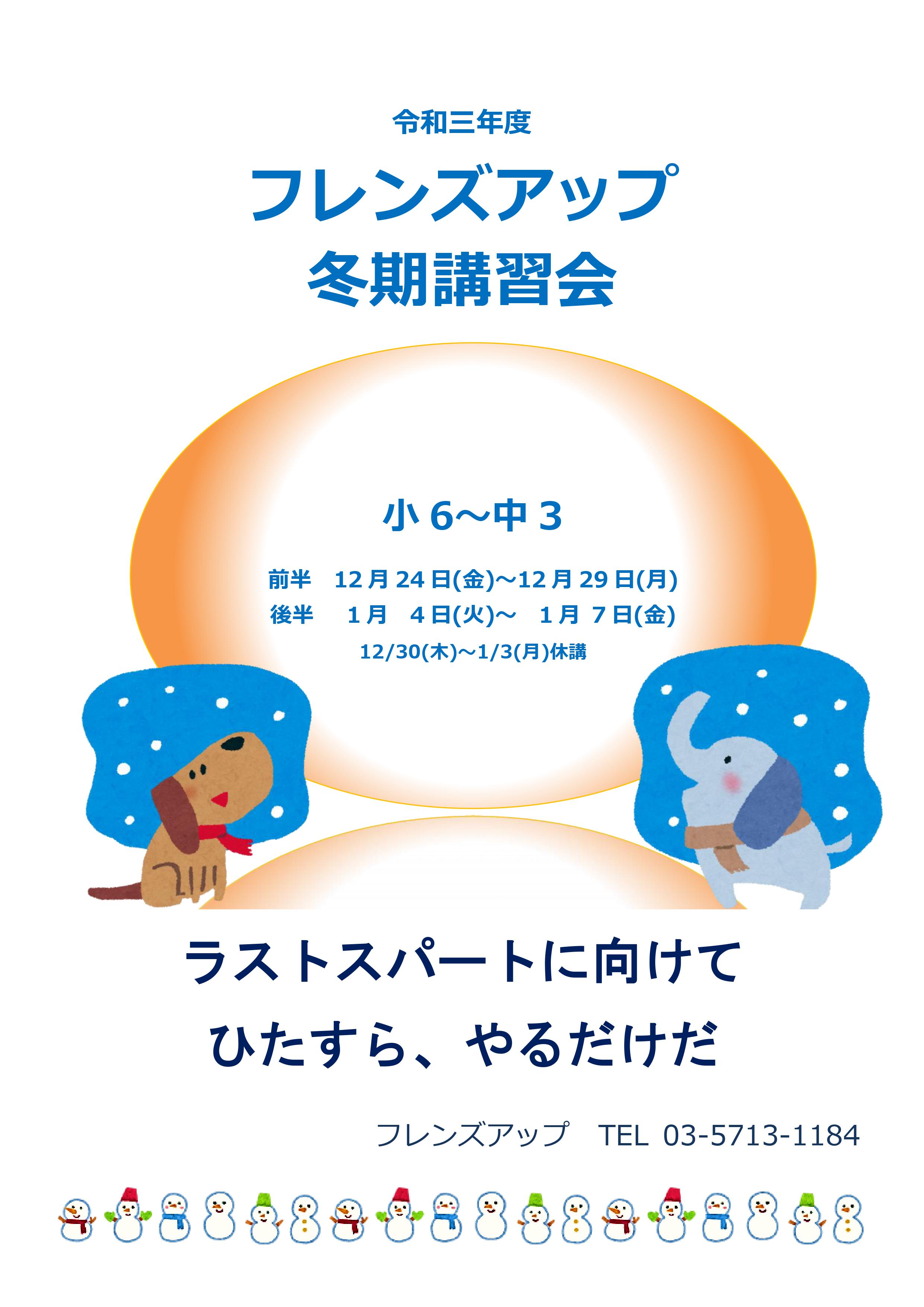 令和三年度 冬期講習のご案内 冬期講習会についてお知らせです。 詳しくはパンフレットをご覧いただくか、お問い合...