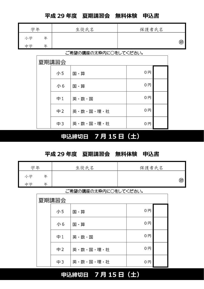 夏期講習会の募集を開始しました!