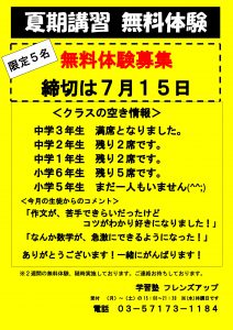 夏期講習会で無料体験してみませんか。