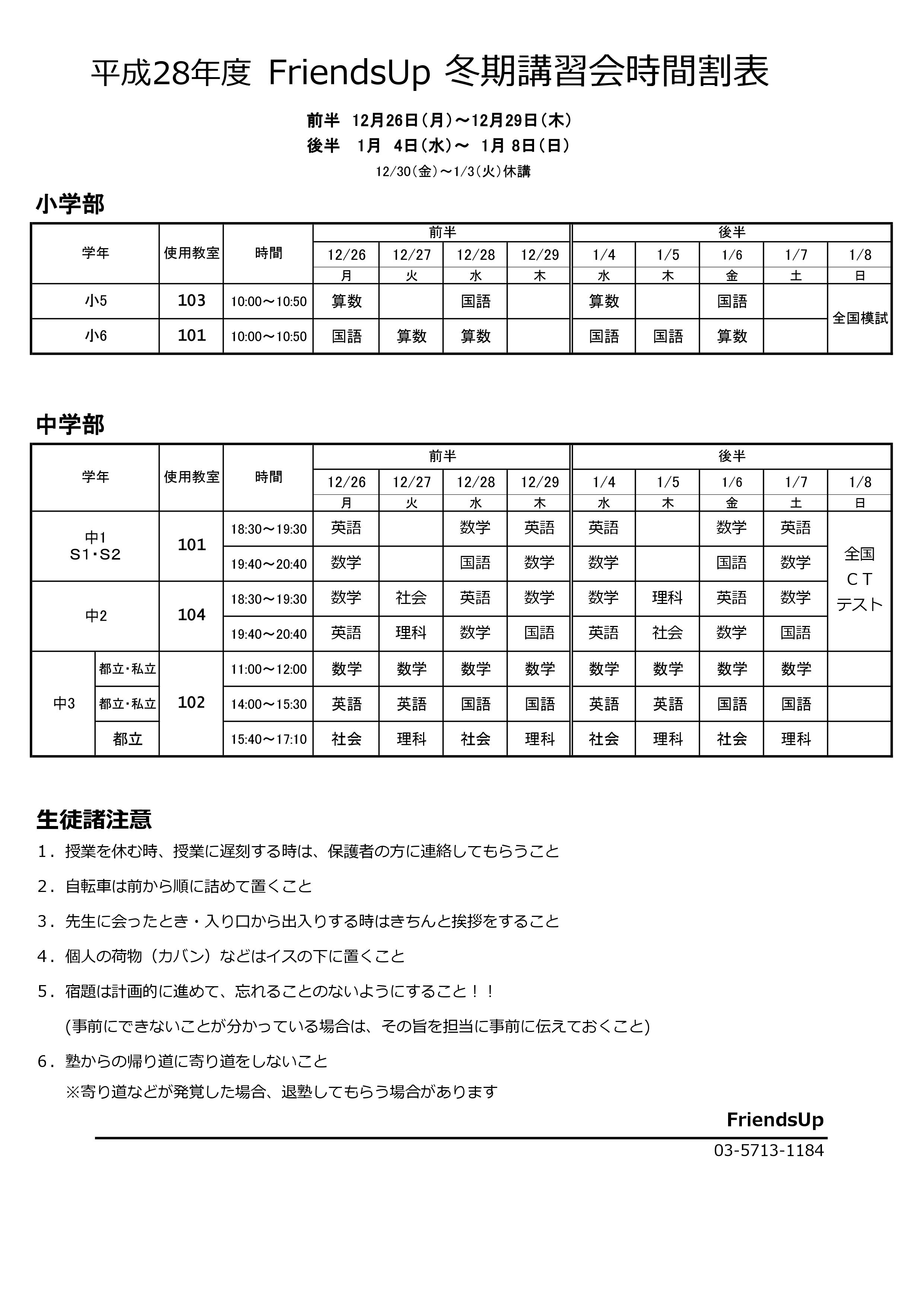 さて、小5~中2まで、冬期講習の無料体験を募集します。